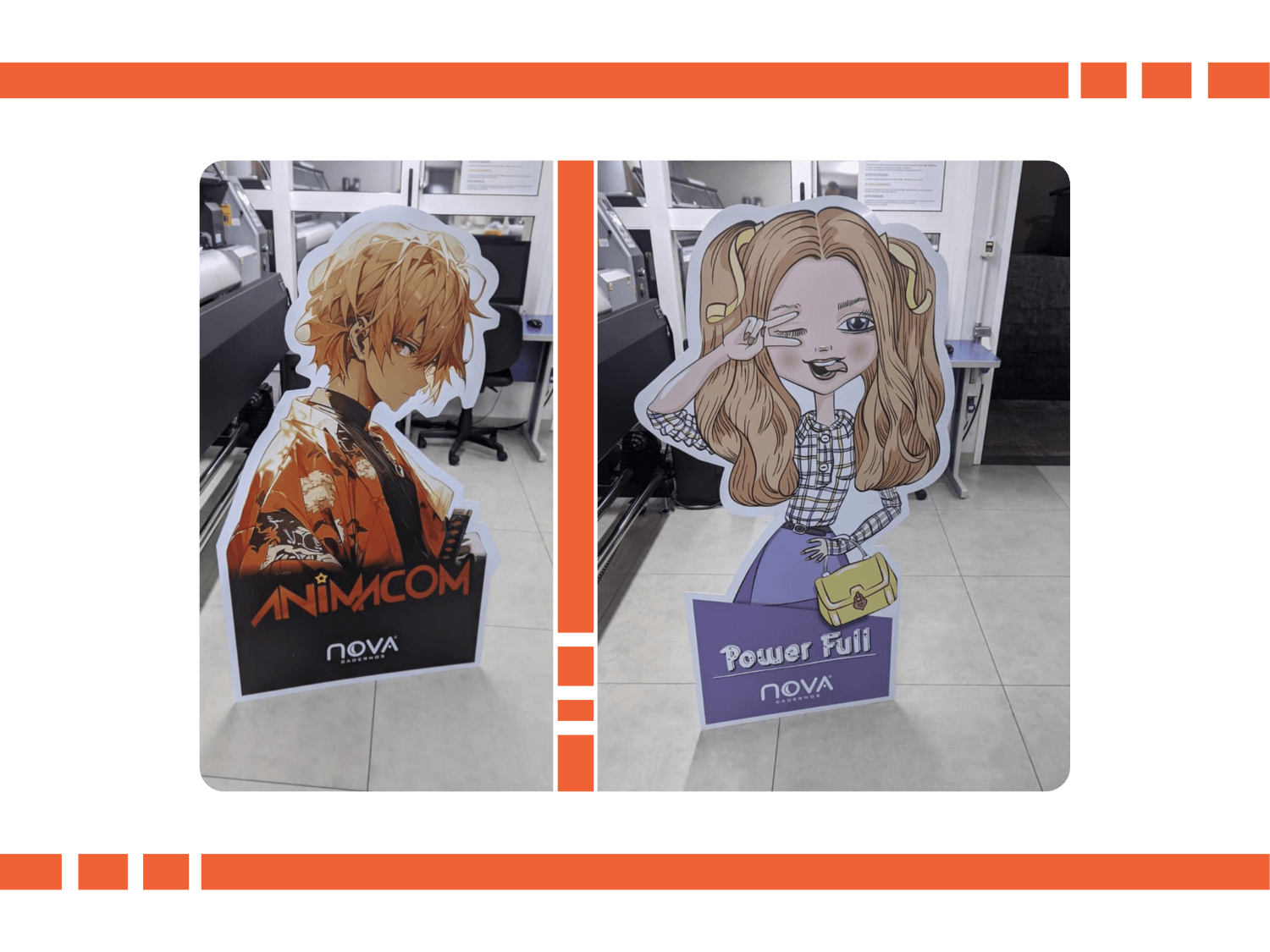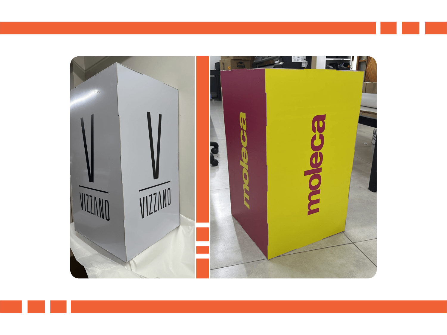 São produtos confeccionado conforme a necessidade do cliente onde podem constar a marca, imagem do produto ou empresa. Geralmente feitos em PS impressos ou adesivados.